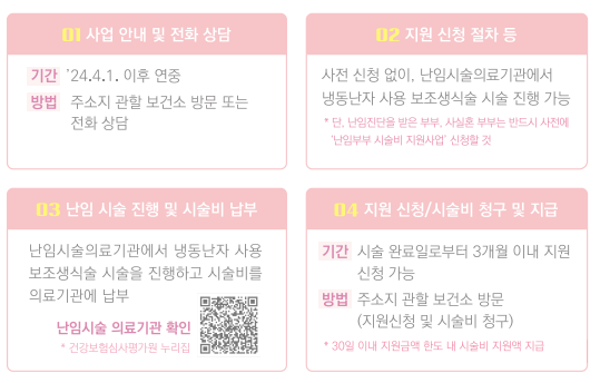 [2] mohw.go.kr - 2024년 냉동난자 사용 보조생식술 지원 사업 안내 - 보건복지부 (https://www.mohw.go.kr/board.es?mid=a10411010100&bid=0019&act=view&list_no=1480890&tag=&nPage=1)
