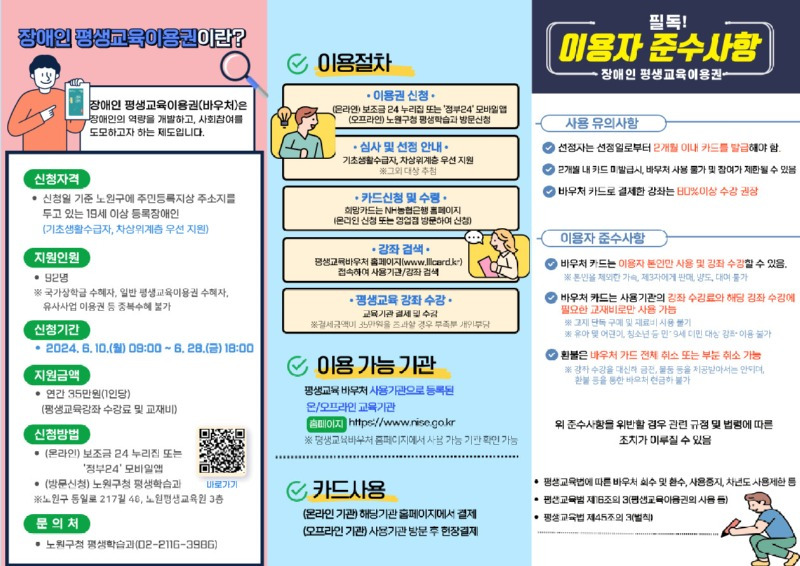 • 가까운 주민센터나 평생교육센터를 방문하여 신청할 수 있습니다.