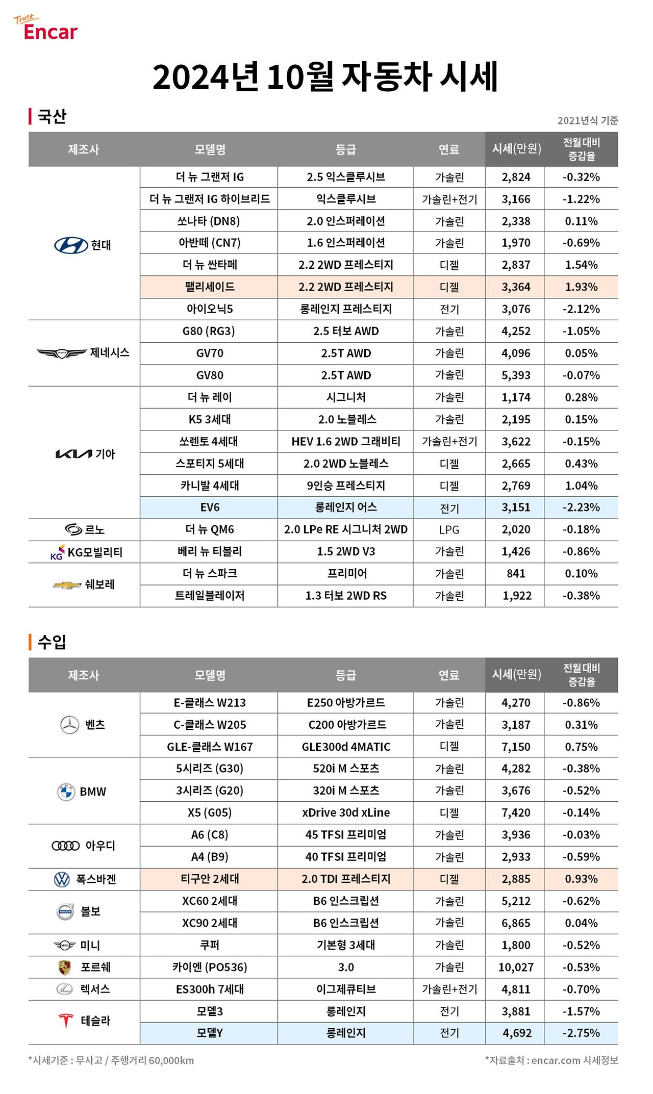 2024년 10월 중고차 시세표