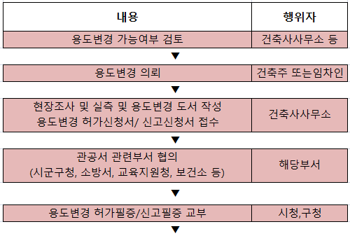 용도변경 절차는 다음과 같은 단계로 진행됩니다.