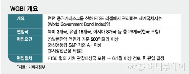 [1] 기획재정부 - [보도참고] 한국, FTSE Russell 세계국채지수(WGBI) 편입 (https://www.moef.go.kr/nw/nes/detailNesDtaView.do?searchBbsId1=MOSFBBS_000000000028&searchNttId1=MOSF_000000000070912&menuNo=4010100)