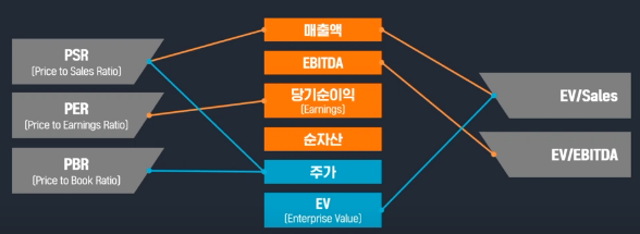 에서는 PER, PBR, PSR 등 다양한 재무 비율이 어떻게 기업 가치와 연결되는지를 보여줍니다.