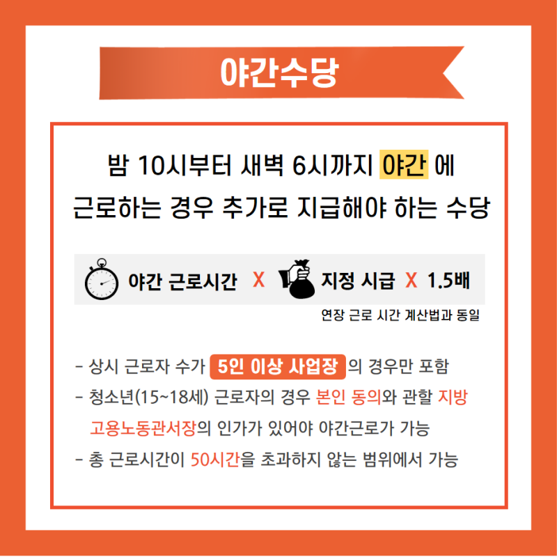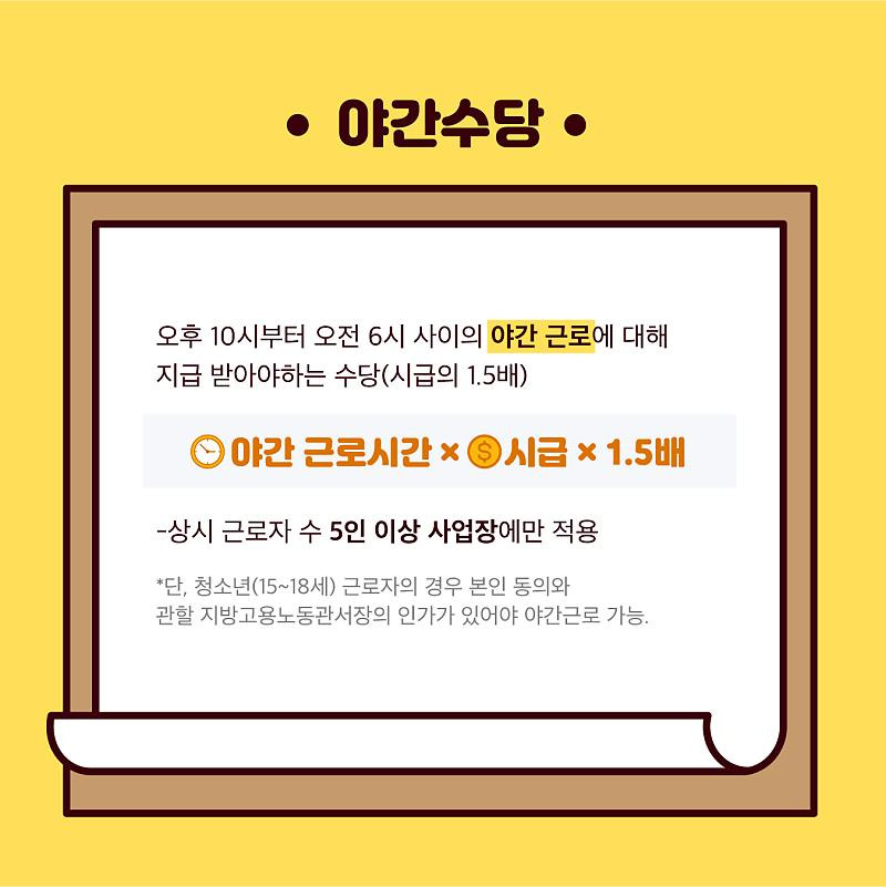 태그 : #야간수당 #근로기준법 #수당계산 #연장근로 #휴일근로 #근로자권리