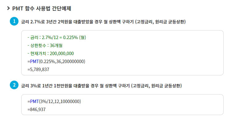 이제 PMT 함수를 활용한 실제 예제를 살펴보겠습니다.