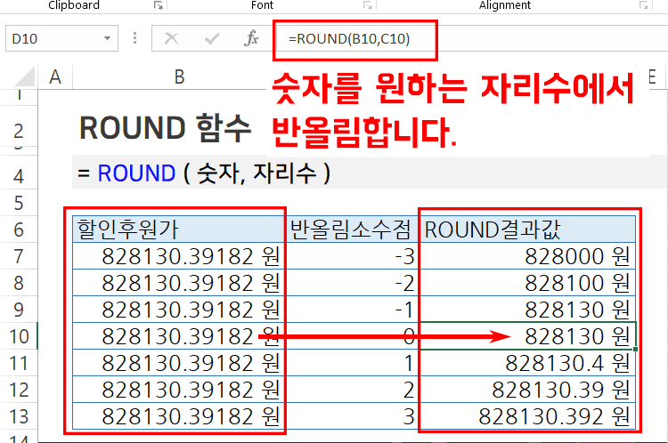 이처럼 ROUND 함수는 다양한 자리수로 반올림할 수 있어 매우 유용합니다.