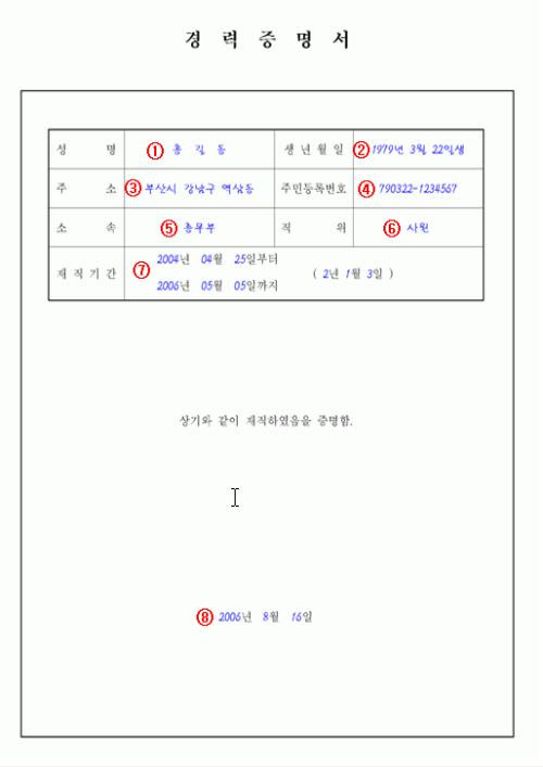 1. 경력증명서 , 재직증명서 정의