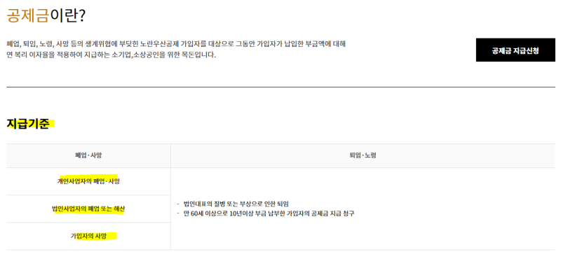 [1] 노란우산 - 공제금지급 - 노란우산 - 중소기업중앙회 (https://yumam.kbiz.or.kr/yuma/contents/contents/contents.do?mnSeq=163)