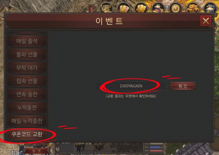 쿠폰을 사용하는 방법은 매우 간단합니다. 게임 내에서 '이벤트' 메뉴로 들어가면 쿠폰 코드 입력란이 있습니다. 여기서 쿠폰 코드를 입력하고 '확인' 버튼을 클릭하면 보상을 받을 수 있습니다. 예를 들어, '1000YAGAIN'이라는 쿠폰 코드를 입력하면 해당 보상을 즉시 받을 수 있습니다.
