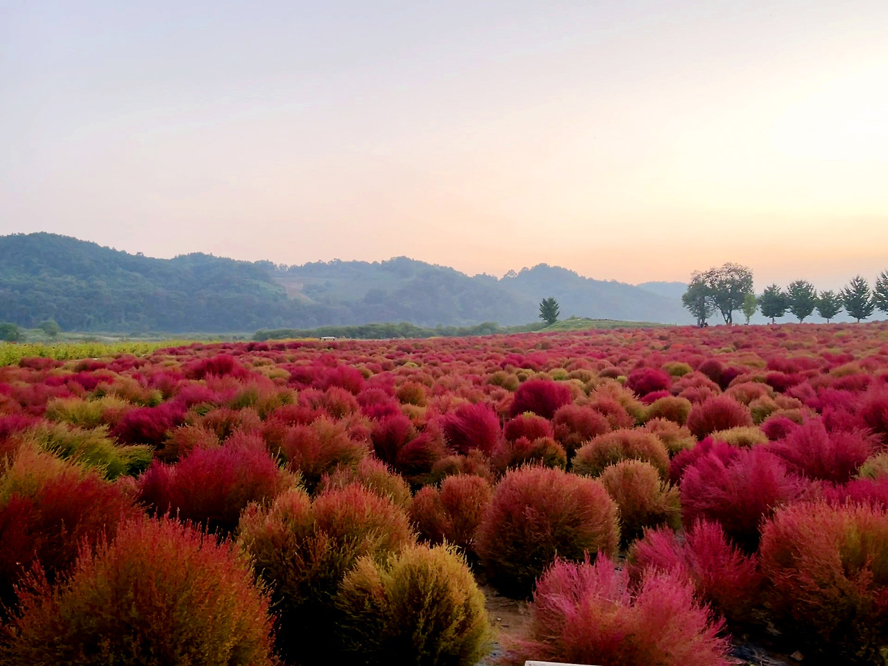임진강 댑싸리공원은 연천군의 대표적인 관광지 중 하나로, 넓은 들판에 댑싸리 식물이 심어져 있습니다. 이곳은 특히 9월 초부터 10월 중순까지가 가장 아름다운 시기로, 댑싸리의 붉고 노란 색깔이 어우러져 환상적인 경관을 만들어냅니다. 공원 내에는 산책로가 잘 조성되어 있어 가족 단위 방문객이나 연인들이 함께 걷기 좋은 장소입니다.
