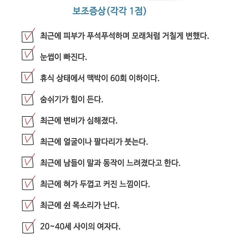- 추위를 잘 타는 느낌 : 체온 조절이 어려워져서 추위를 느끼기 쉽습니다.