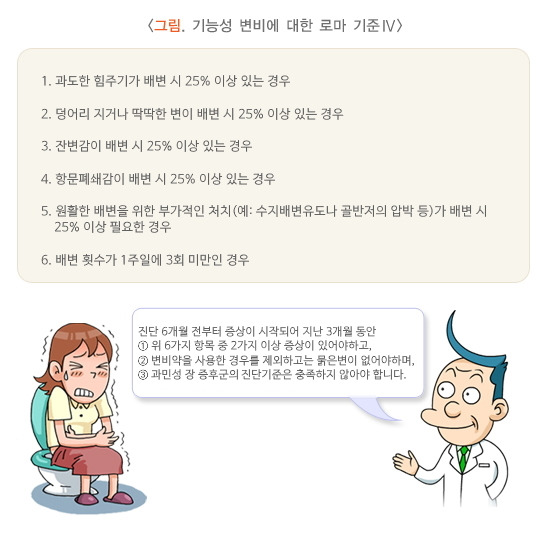 - 배변 후에도 잔여감이 남아 있는 느낌