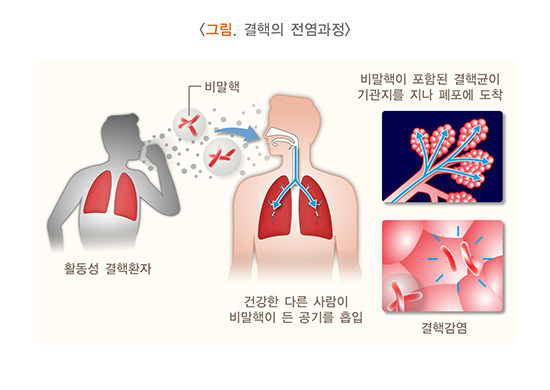 결핵은 매우 전염성이 강한 질병입니다. 감염된 사람이 기침이나 재채기를 할 때 공기 중으로 결핵균이 방출됩니다. 건강한 사람이 이러한 공기를 흡입할 경우 결핵균이 폐로 들어가 감염이 일어날 수 있습니다. 특히 밀폐된 공간이나 사람이 많은 장소에서 전파가 쉽게 이루어지므로 주의가 필요합니다.