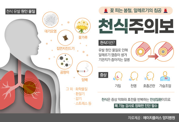 - 호흡기 감염 : 감기나 독감과 같은 호흡기 질환이 천식을 악화시킬 수 있습니다.