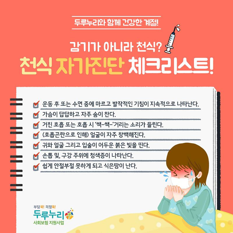 천식은 만성적인 호흡기 질환으로, 조기 발견과 관리가 중요합니다. 위에서 언급한 증상과 위험 요인을 잘 이해하고, 적절한 관리 방법을 통해 건강한 삶을 유지하시기 바랍니다. 추가적인 정보는 서울대학교병원과 국가건강정보포털에서 확인하실 수 있습니다.