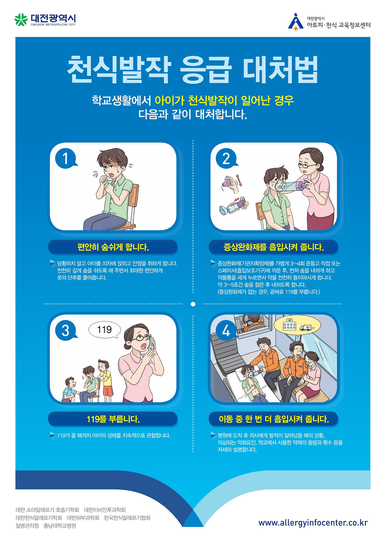 천식 발작이 발생했을 때는 다음과 같은 단계로 대처해야 합니다: