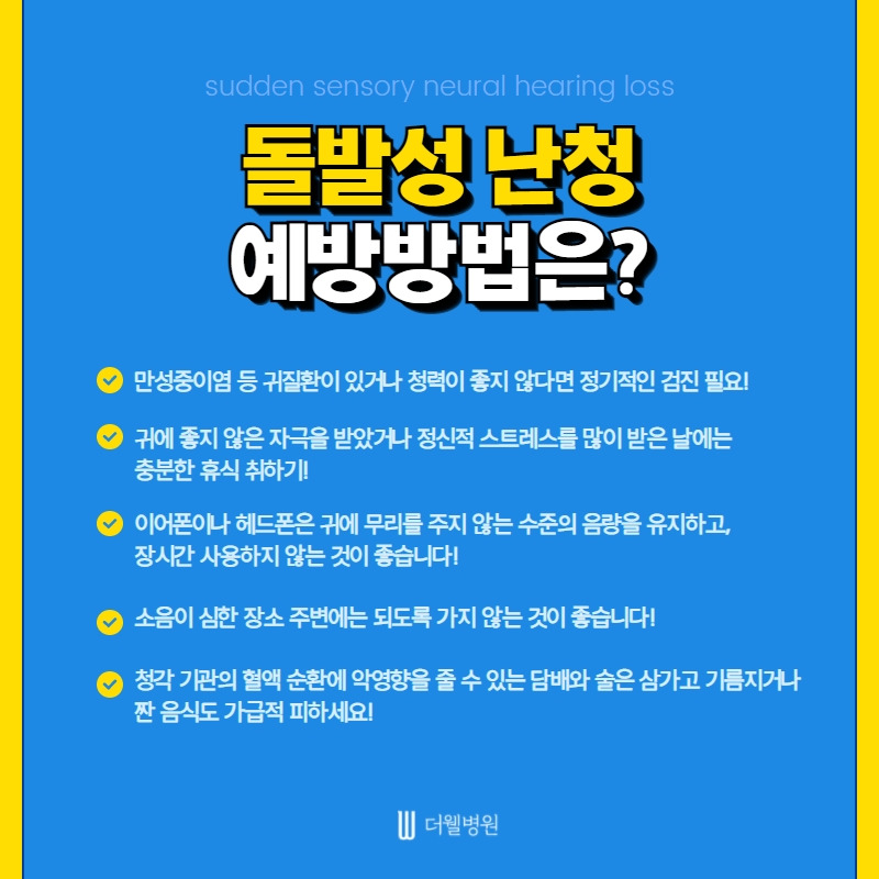 돌발성 난청 예방을 위한 생활 습관을 잘 지켜서 건강한 귀를 유지하시기 바랍니다! 😊