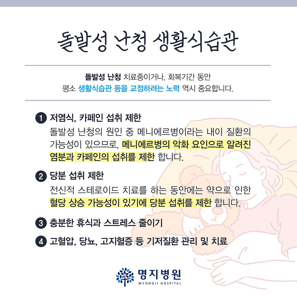 #돌발성난청 #청력보호 #귀건강 #생활습관 #예방 #스트레스관리 #정기검진
