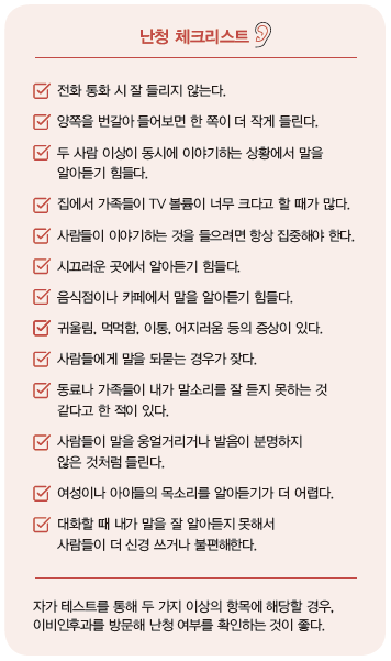 - 정기적인 청력 검사 : 귀에 문제가 있다고 느끼면 즉시 이비인후과를 방문하여 검사를 받는 것이 중요합니다.