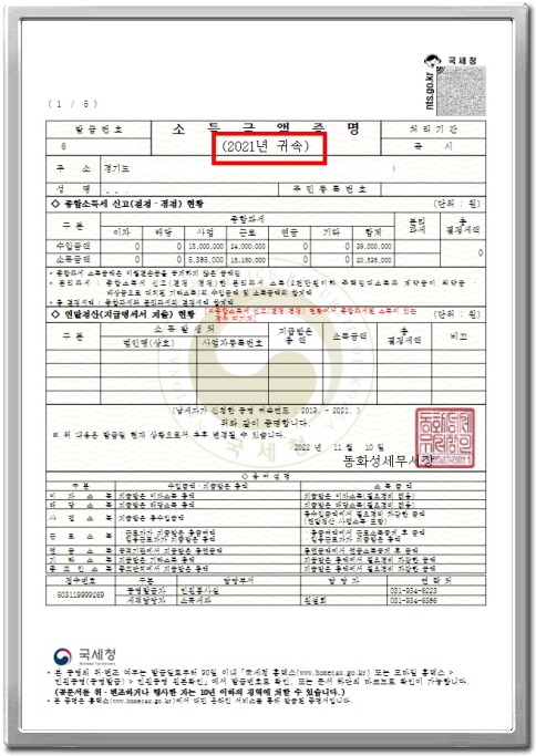 소득금액증명원은 발급 시 연도에 따라 다르게 나타납니다. 예를 들어, 2021년의 경우 다음과 같은 정보가 포함되어 있습니다.