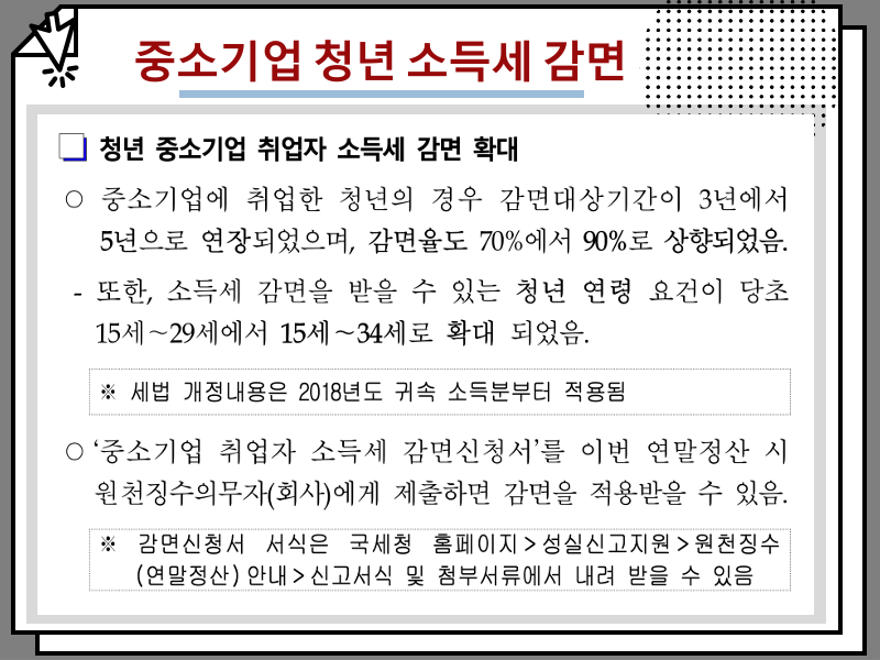 태그: #중소기업 #청년소득세감면 #소득세 #세금감면 #청년취업 #국세청