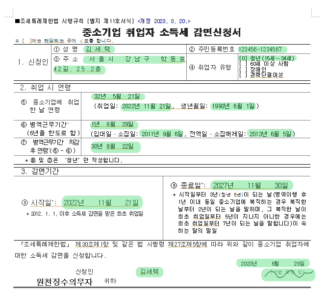 - 소득세 감면 신청서 제출