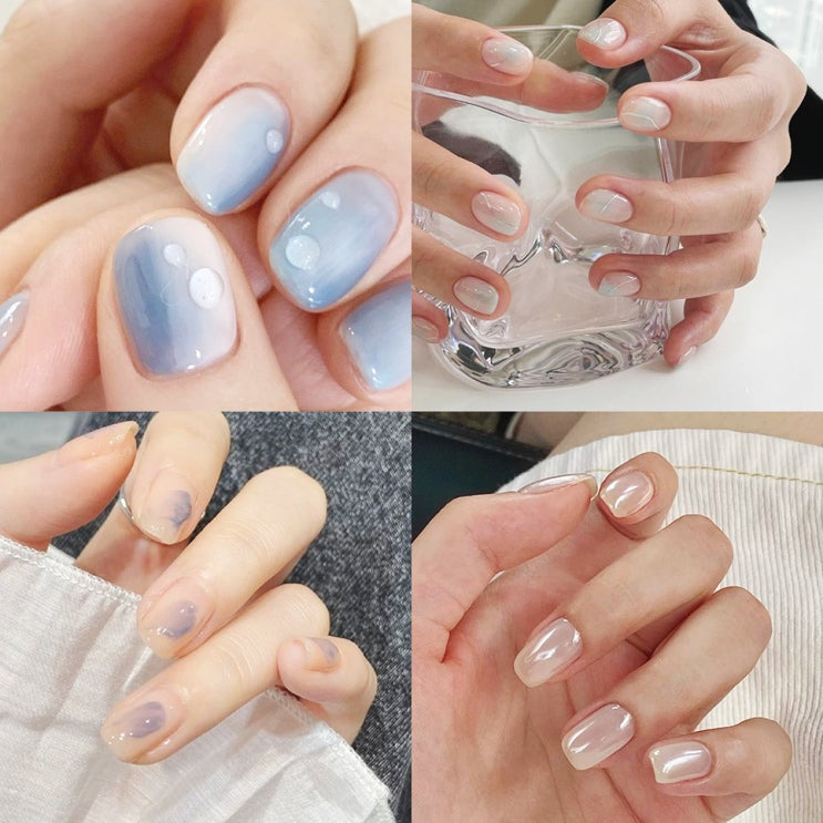 1. 워터컬러 그레이 네일 부드러운 회색 톤에 워터컬러 효과를 주어 자연스러운 느낌을 강조한 디자인입니다. 차분하면서도 세련된 매력을 발산합니다.