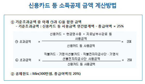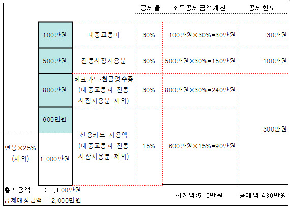 신용카드 소득공제 계산 예시