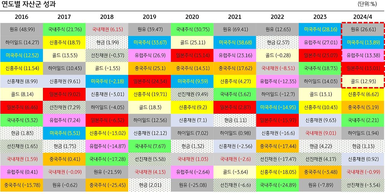 처럼 다양한 자산 클래스의 연간 투자 성과를 살펴보면, 금과 채권 시장의 변동성이 두드러지는 것을 확인할 수 있습니다. 이는 투자자들에게 자산 배분 전략을 다시 한번 점검할 기회를 제공합니다.