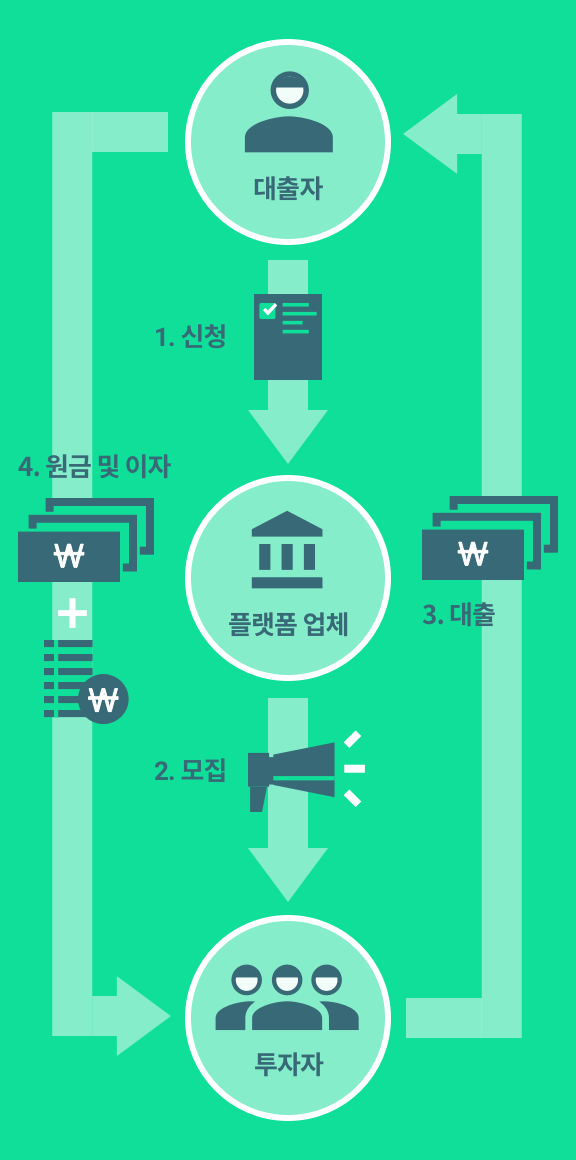 P2P 투자의 과정은 간단합니다. 다음과 같은 4단계를 거치게 됩니다: