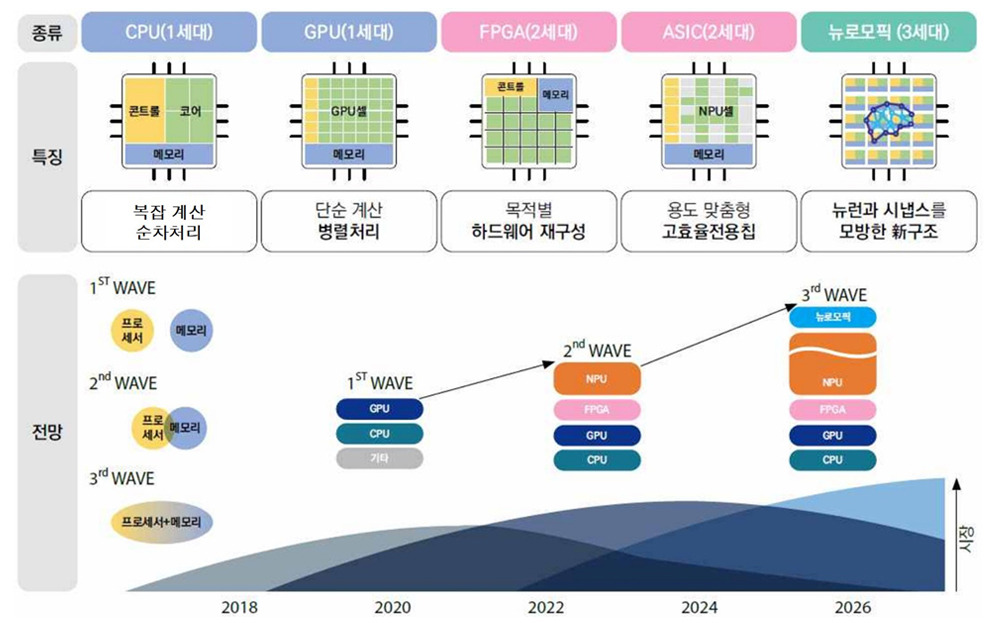 에서는 이러한 프로세서의 발전 과정을 보여주고 있습니다. 특히, AI 반도체는 고성능 연산을 위한 특화된 아키텍처를 채택하고 있어, AI 기술의 발전에 큰 기여를 하고 있습니다.