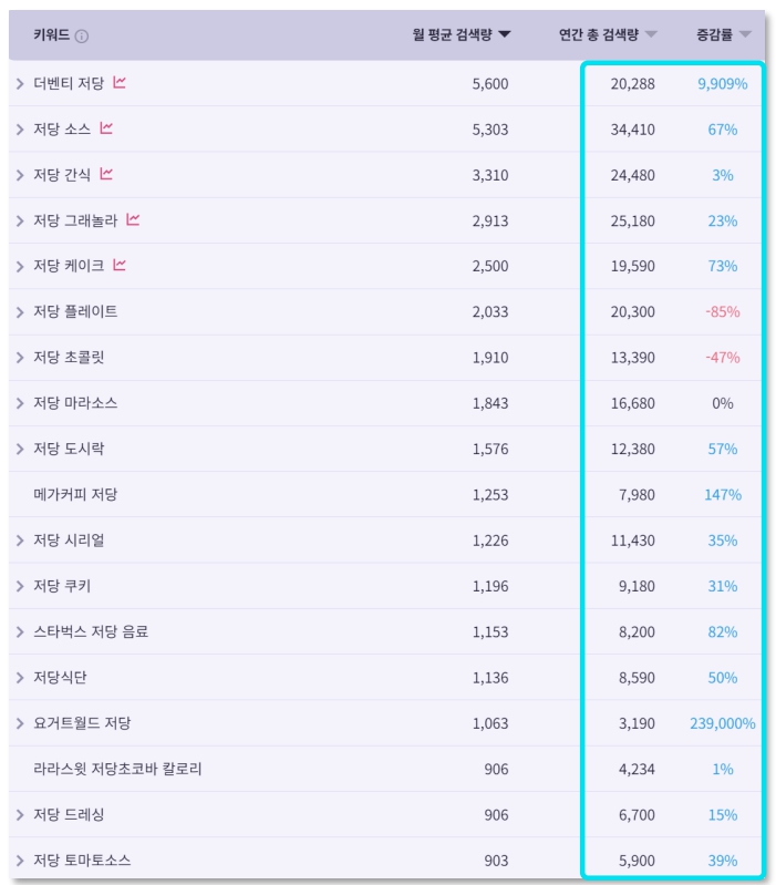 최근 저당식품에 대한 관심이 높아지면서, 다양한 트렌드가 나타나고 있습니다. 특히, 자연 유래 감미료를 사용한 저당식품이 인기를 끌고 있으며, 이는 소비자들이 건강한 식습관을 추구하는 경향을 반영합니다. 또한, 저당식품의 검색량이 증가하고 있으며, 이는 저당식품에 대한 소비자들의 관심이 높아지고 있음을 보여줍니다.