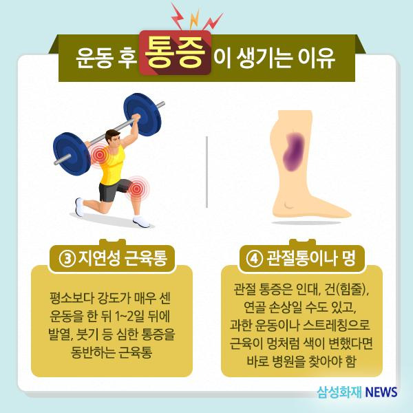 운동 후 근육통은 크게 두 가지로 나눌 수 있습니다: