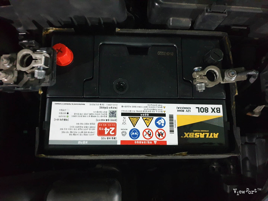 - 기존 배터리 분리 : 먼저 음극(검은색) 단자를 분리한 후 양극(빨간색) 단자를 분리합니다. 이때, 배터리의 부식 상태를 확인하고, 필요시 청소합니다.