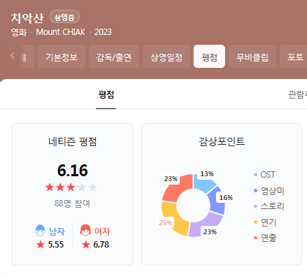 현재 네이버 관람객 평점 평균은 6.16 으로 저조 하긴 합니다.