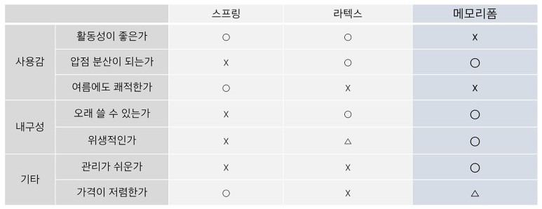 라텍스 매트리스와 다른 매트리스 비교