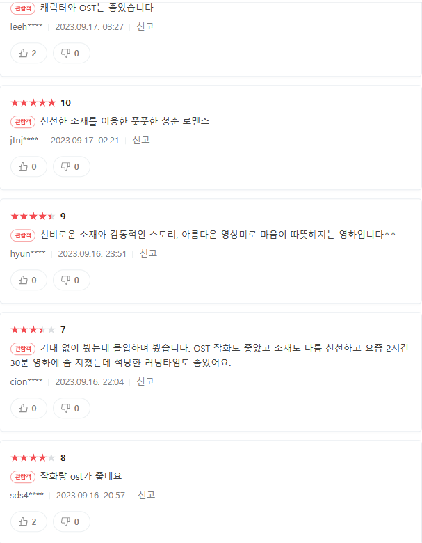 영화 예매 순위 TOP 6!! (3) | 2023.09.18 |