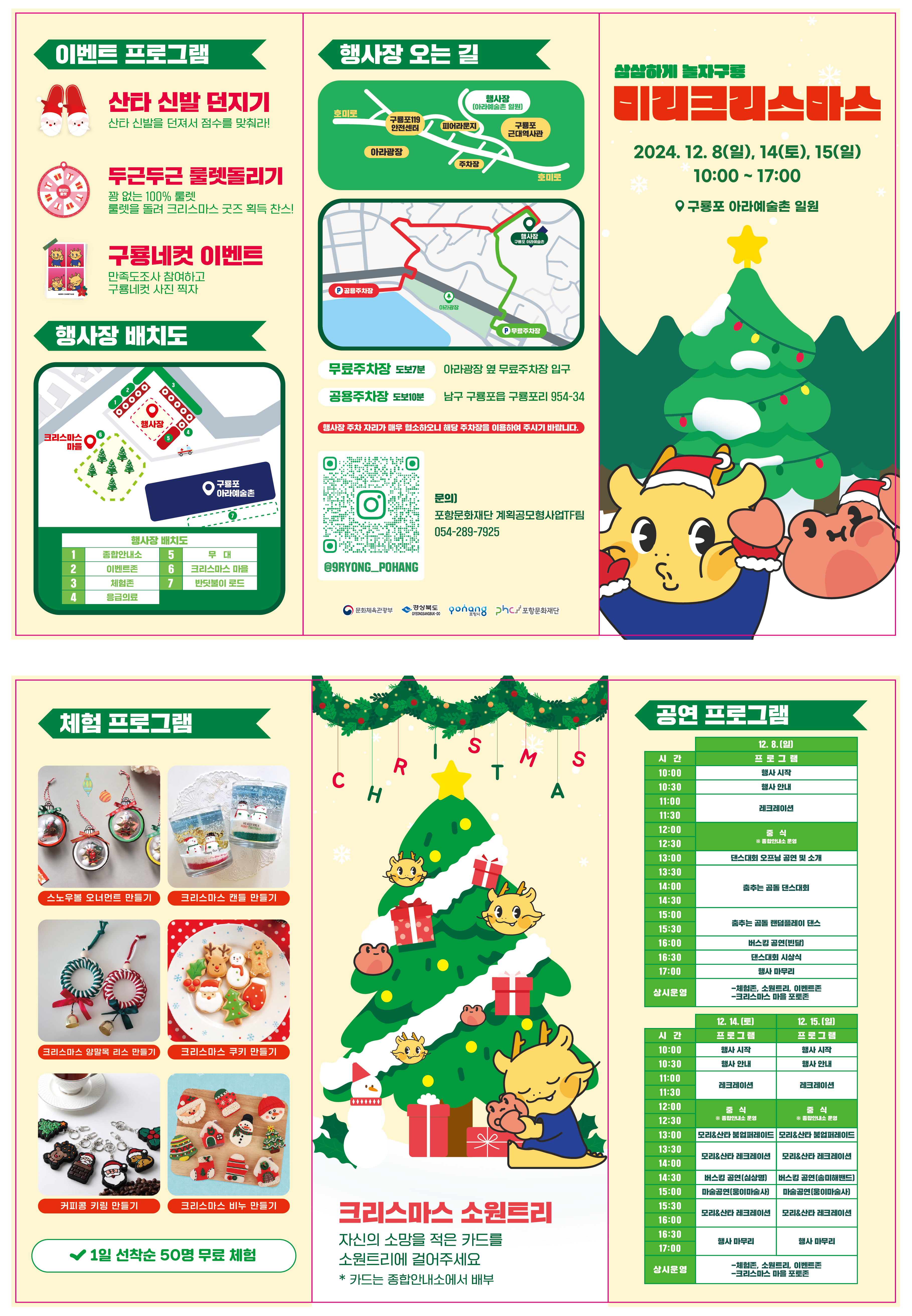 삼삼하게 놀자구룡 미리크리스마스는 포항에서 크리스마스를 미리 만날 수 있는 특별한 기회입니다. 가족, 친구, 연인과 함께 즐거운 시간을 보내며, 따뜻한 크리스마스의 분위기를 만끽해 보시기 바랍니다. 많은 분들이 이 축제에 참여하여 즐거운 추억을 만들기를 기대합니다.