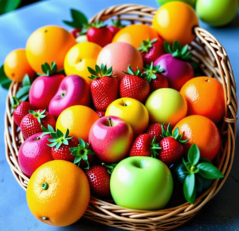 2. 사과 : 아삭한 식감과 달콤한 맛이 특징이며, 섬유질이 풍부해 소화에 도움을 줍니다.