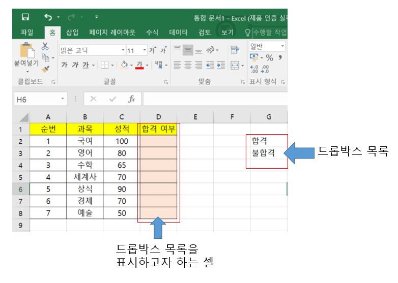 • 학생 성적 관리 : 학생의 성적을 입력할 때, "합격" 또는 "불합격"을 선택할 수 있는 드롭다운 목록을 만들 수 있습니다.