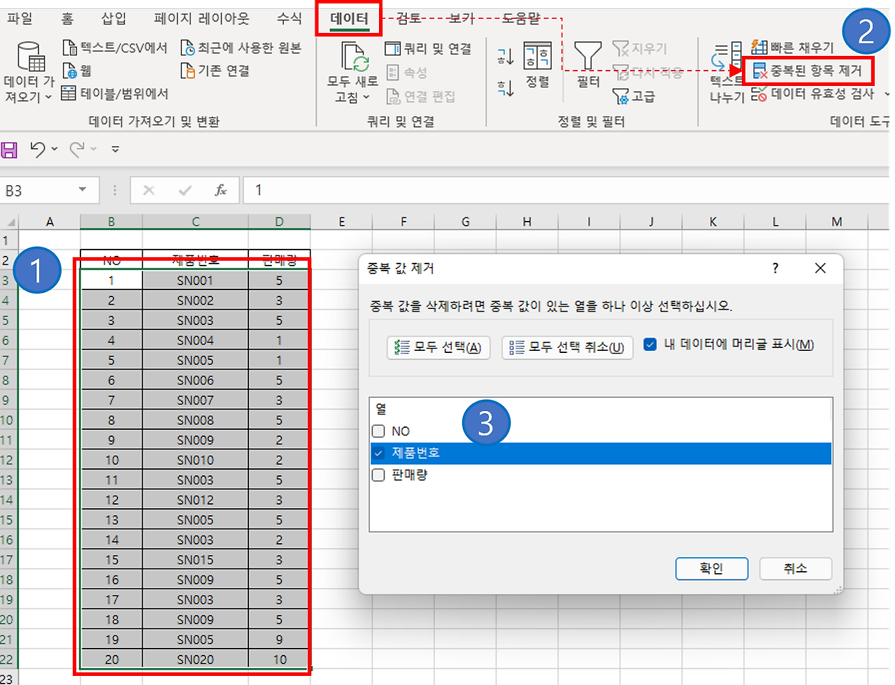 - 중복값을 찾고자 하는 범위를 선택합니다.