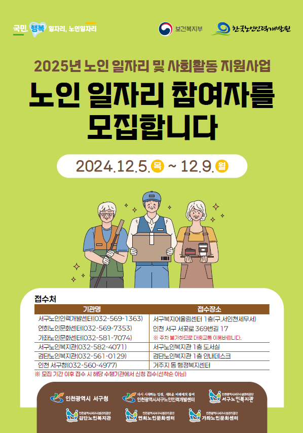 2025년 노인 일자리 모집!