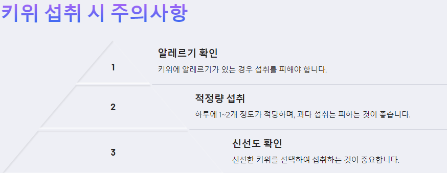 • 신선한 키위 선택 : 신선한 키위를 선택하여 섭취하는 것이 중요합니다.