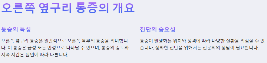이 외에도 다양한 질환이 오른쪽 옆구리 통증을 유발할 수 있으므로, 증상이 지속되거나 심해질 경우 전문의의 진료를 받는 것이 중요합니다.
