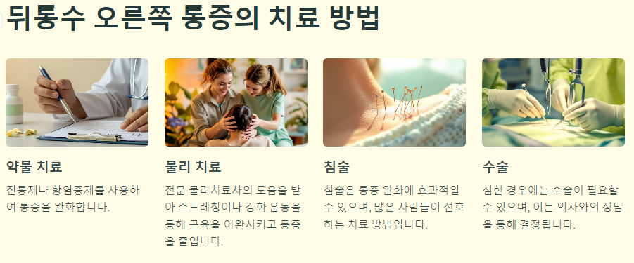 • 약물 치료 : 진통제나 항염증제를 사용하여 통증을 완화합니다.