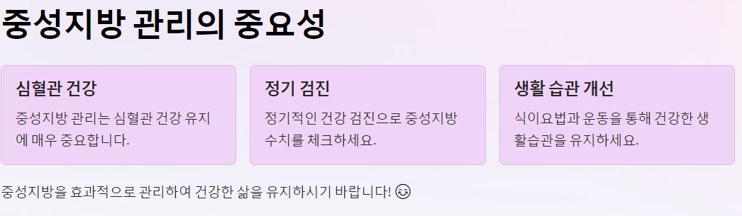 중성지방을 효과적으로 관리하여 건강한 삶을 유지하시기 바랍니다! 😊