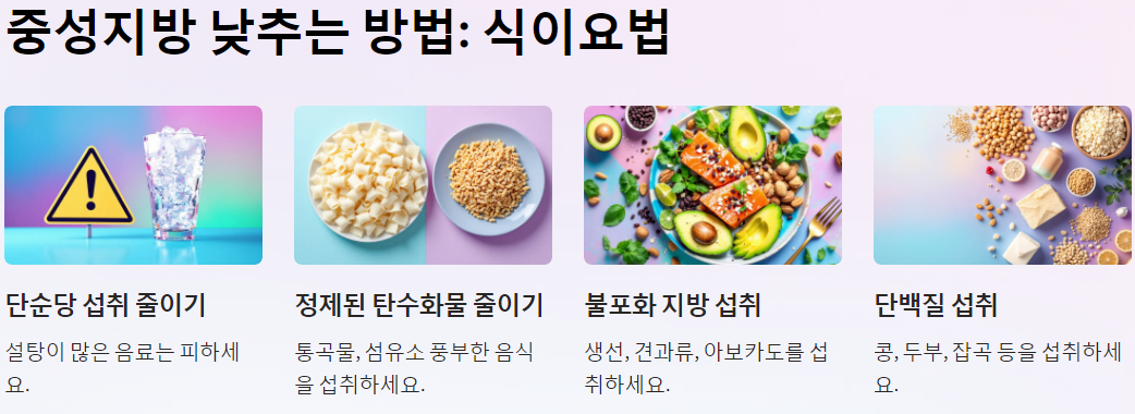 #중성지방 #건강관리 #식이요법 #운동 #심혈관건강 #체중관리 #불포화지방 #단백질 #스트레스관리