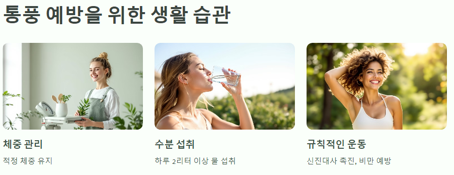 통풍 예방을 위해서는 다음과 같은 생활 습관 개선이 필요합니다: