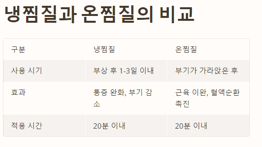 - 부상 후 2-3일 : 냉찜질 후 온찜질
