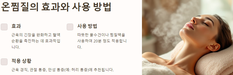 온찜질은 다음과 같은 상황에서 추천됩니다: