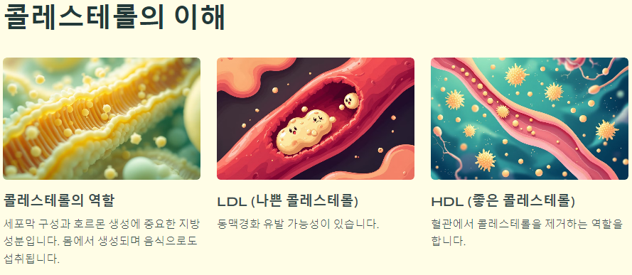 안녕하세요! 오늘은 많은 분들이 궁금해하시는 콜레스테롤에 대해 알아보겠습니다. 콜레스테롤은 우리 몸에 꼭 필요한 성분이지만, 수치가 높아지면 여러 가지 건강 문제를 일으킬 수 있습니다. 그렇다면 콜레스테롤 수치가 높은 이유와 이를 낮추는 방법, 그리고 도움이 되는 영양제에 대해 자세히 알아보겠습니다. 😊